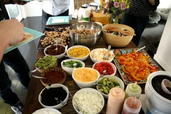 For the food, I enlisted the help of chef extraordinaire Leslie Sarna. Inspired by the idea of a retro San Diego theme, she created a large taco bar with lots of different vegetables, meats, toppings and sauces. It was a huge hit. I decided recently that the only thing I don’t like about throwing parties is making the food, so thank goodness I have such talented (and willing) friends in my life!