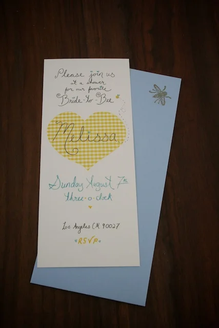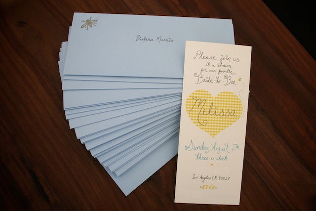 I designed the invitations by hand, mostly because I’m not entirely sure how to use Photoshop properly, but also because I studied art in school and have a decent amount of confidence in my lettering skillz. The invitations were printed on cream card-stock at FedEx Office, and the bee stamp and envelopes were purchased at Paper Source.