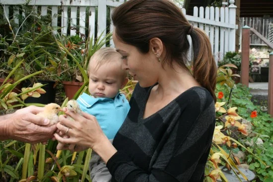 I love springtime and although I’m not religious, I take the Easter holiday as an opportunity to celebrate and give thanks for good weather and all the new signs of life. My favorite sign of spring this year has to be the new baby chicks that my mom and dad have welcomed into their household!! Finn got to ‘meet’ them a couple weeks ago and this weekend we’re planning to spend more time checking them out, attempting an egg hunt, and dyeing eggs (I really want to glitter them like the cover of Martha Stewart mag!)